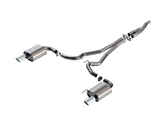 Powerful Exhaust Upgrade. The Borla S-Type Cat-Back Exhaust is a premium performance exhaust system designed for 2024-2025 Ford Mustang EcoBoost models without Active Exhaust. Featuring dual rear exits and two polished 4-inch T-304 stainless steel tips, this exhaust provides a moderate yet aggressive sound while enhancing your vehicle's horsepower and fuel efficiency.