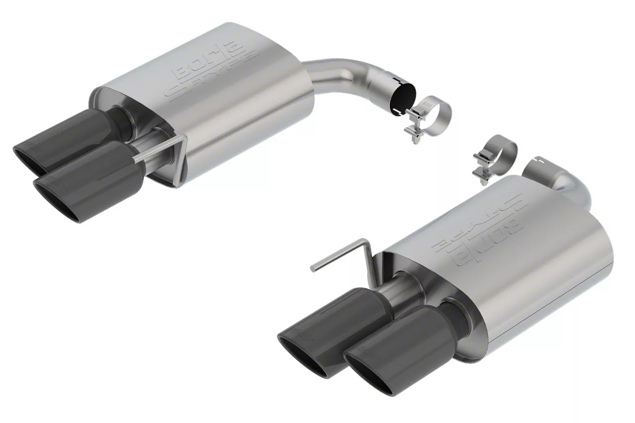 Throaty Exhaust Sound. Turn your Mustang from a purring kitten into a roaring lion with this Borla Stinger S-Type Axle-Back Exhaust with Black Chrome Tips. Utilizing larger mandrel-bent tubes and a dual split rear exit, this exhaust system can provide your Mustang with a throaty aggressive tone when accelerating and a sweet performance tone when cruising. You will definitely catch the attention of other people once they hear the powerful growl of your Mustang.