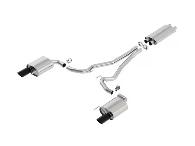 Straight-Through Cat-Back Exhaust. Unleash greater horsepower, torque, and fuel economy out of your Mustang when you invest in Borla’s Mustang Touring Cat-Back Exhaust with Black Chrome Tips. This cat-back exhaust features mandrel bends and a straight-through design that allows air to circulate quickly out of your exhaust and eliminate backpressure. In addition, Borla added in an internal H-pipe to channel air more efficiently and unleash greater horsepower out of your Mustang.