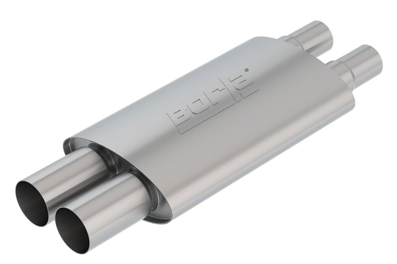 Polished Finish, 3-Inch Stainless Steel Tubing. The stainless steel construction of the Borla Resonator Muffler makes it a very tough, long-lasting hardware for your Mustang. It is made from premium T-304 stainless steel that won’t rust or corrode, even when exposed to the elements.