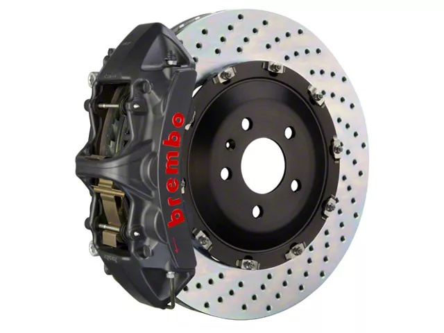 Description. Big Brake Kit; 6 Piston Black Hard Anodized Calipers; 380x34 2-Piece Drilled Rotors; With Brake Pads; Vented Curved 48 Vane; Advanced High Carbon Alloy, Corrosion Resistant Plating; Floating H-Bobbin with Anti Rattle Spring Mounting; Front