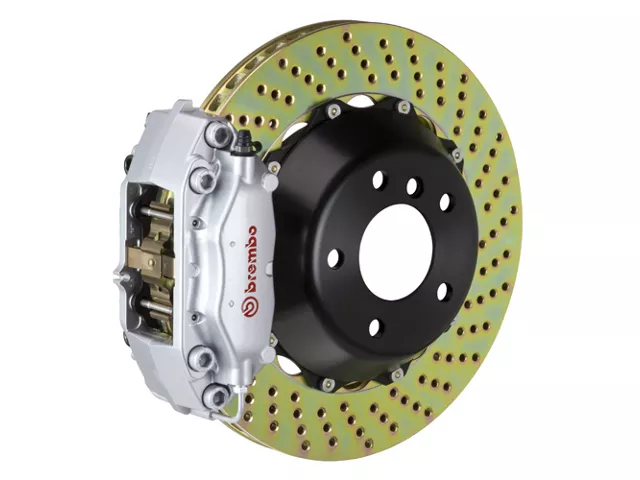 Robust Construction for Enduring Quality. Crafted with precision and durability, the Brembo GT Series Brake Kit ensures long-lasting performance. Furthermore, the cross-drilled rotors improve heat dissipation, maintaining optimal braking efficiency under extreme conditions. The vibrant silver calipers are not only aesthetically pleasing but also constructed to withstand rigorous use, ensuring they retain their functionality and appearance over time.