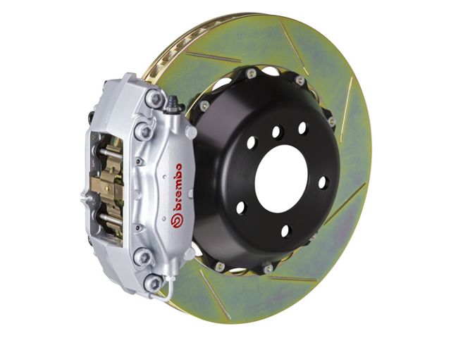 Description. Big Brake Kit; 4 Piston Silver Calipers; 345x28 2-Piece Slotted Rotors; With Brake Pads; Vented Curved 48 Vane; Advanced High Carbon Alloy, Corrosion Resistant Plating; Floating D-Bobbin with Anti Rattle Spring Mounting; Rear