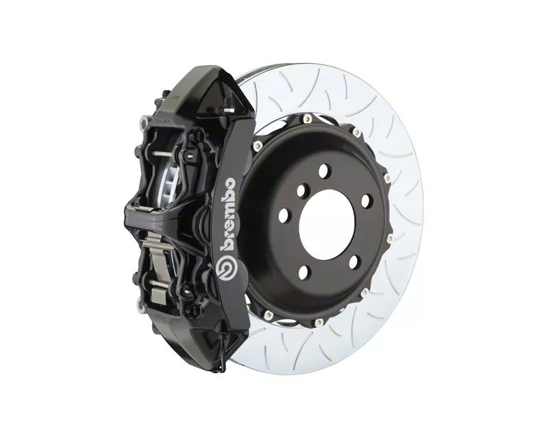 Construction and Appearance. The black-finished GT Series calipers are precision-machined from a single billet of aluminum for maximum stiffness and minimal flex. The 2-piece floating rotors with Type 3 slotting are optimized for extreme heat cycling, reducing thermal cracking by up to 40% while improving pad bite and consistency. This kit includes high-performance pads, stainless steel braided brake lines (TUV/DOT approved), and all mounting brackets and premium hardware for a complete upgrade.