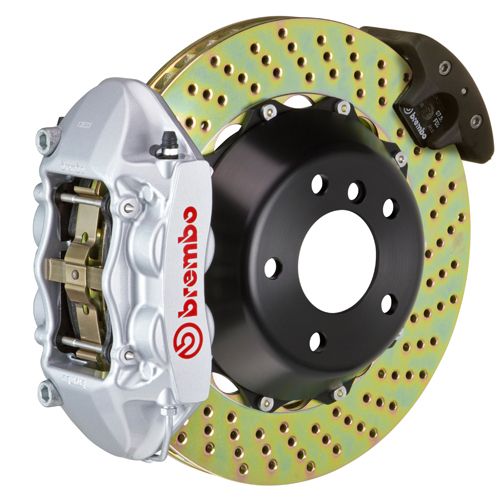 Enhanced Rear Braking Control. The Brembo GT Series 4-Piston Rear Big Brake Kit with 15-Inch 2-Piece Cross Drilled Rotors is engineered to improve rear braking performance and balance in high-performance Mustangs. Designed to complement upgraded front brake systems, this kit delivers improved heat management, consistent pedal feel, and confident stopping power. It is an ideal upgrade for aggressive street and track driving applications.