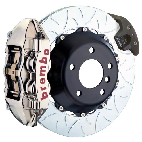 GT Rear End Brake Kit. This Brembo set has two rotors, two calipers, four brake pads, and retaining clips for the rear end of your Mustang for a complete brake upgrade.