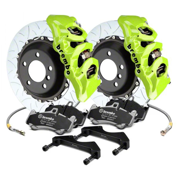 Application. The Brembo GT Series 6-Piston Front Big Brake Kit with 15.90-Inch 2-Piece Type 3 Slotted Rotors; Fluorescent Yellow Calipers fits 2015-2023 Mustang GT models.