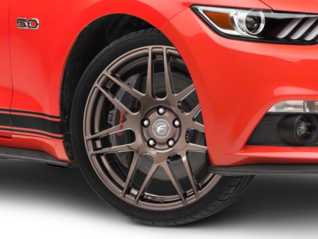 Application. This Forgestar F14 Monoblock Bronze Burst Wheel; 19x9, with a backspace of 6.378 Inch, 162.1mm and a bolt pattern of 5 x 114.3mm (5 x 4.5-Inch), is designed to enhance alignment and driving stability. It's specially designed to fit the 2015-2023 Mustang EcoBoost, V6 models, sold individually.