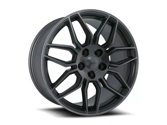 The 19x10 C8 ZO6 Replica Satin Titanium Grey Machine Face Wheel; Rear Only; 19x10; 79mm Offset is completed in a high-quality titanium gray finish with steel machined accents, which is sure to turn heads. There is a durable clear coat for extra protection and enhanced appearance that can withstand the rigors of the road.
