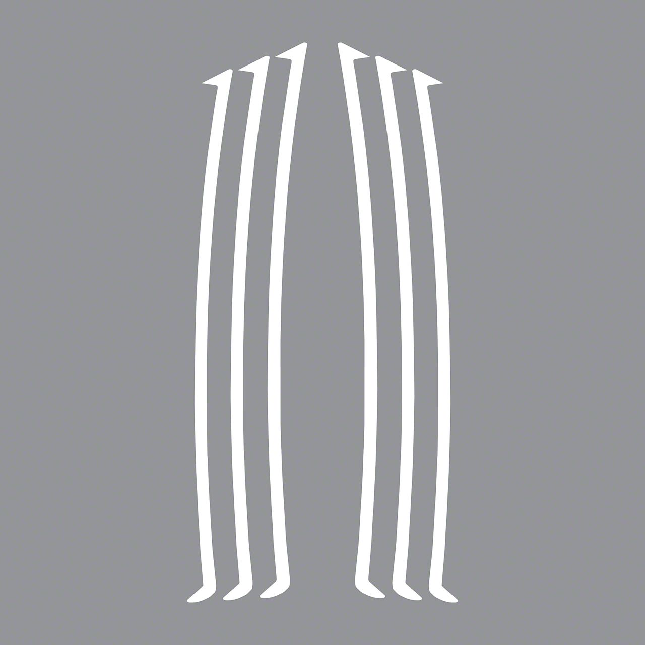 Construction and Appearance. Each inlay is crafted from UV-stable, automotive-grade vinyl with a glossy white finish for standout contrast and lasting durability. The sporty flared ends add a custom flair, and the Made-in-USA quality ensures a product built for both looks and longevity.