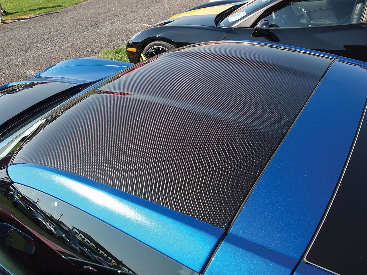 Carbon Fiber Targa Roof Panel with Painted Accent Sides and Inner Headliner; Elkhart Lake Blue (14-19 Corvette C7 Coupe)Find parts that fit my vehicle