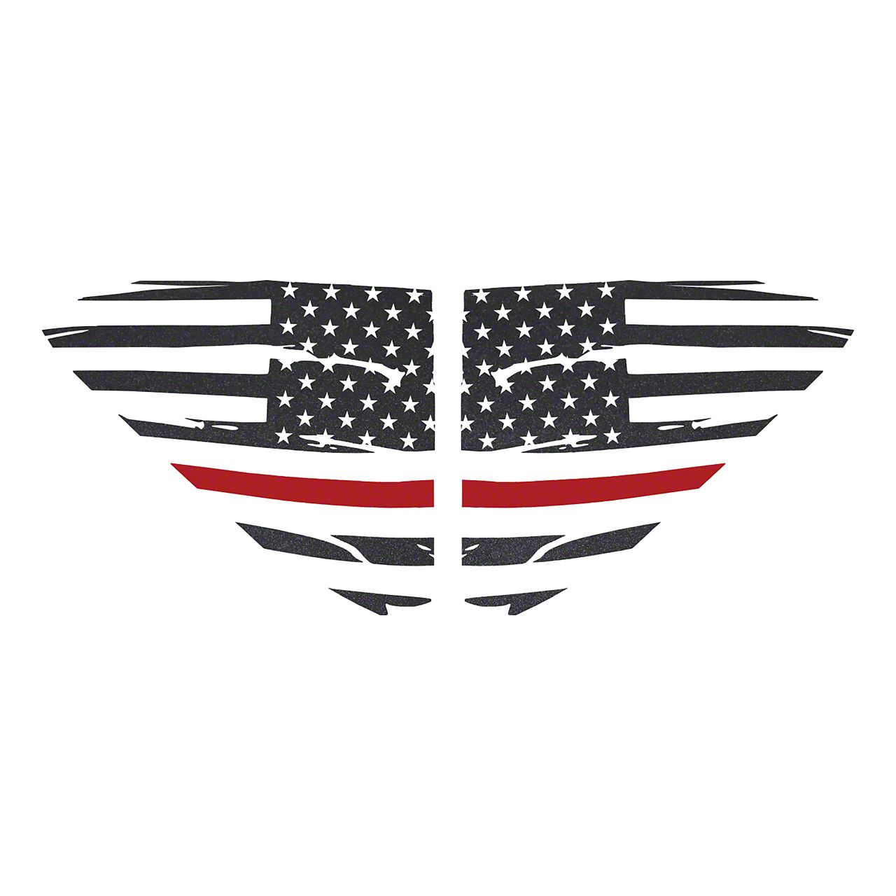 CA Distressed US Flag Window Decals; Gloss Carbon Flash with Red Stripe
