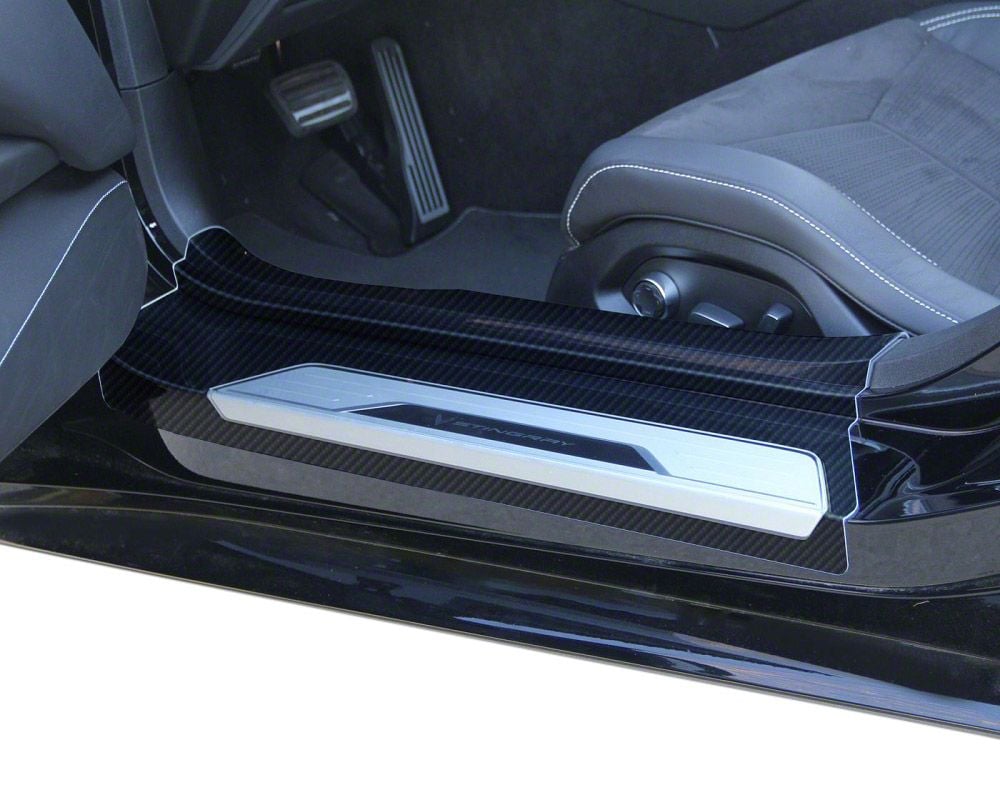 Application. These Door Sill Guards fit 2020-2026 Chevrolet Corvette C8 Models. They enhance the entryway’s durability and appearance, shielding against common wear while adding a sporty, carbon fiber-inspired look that complements the Corvette’s sleek design.