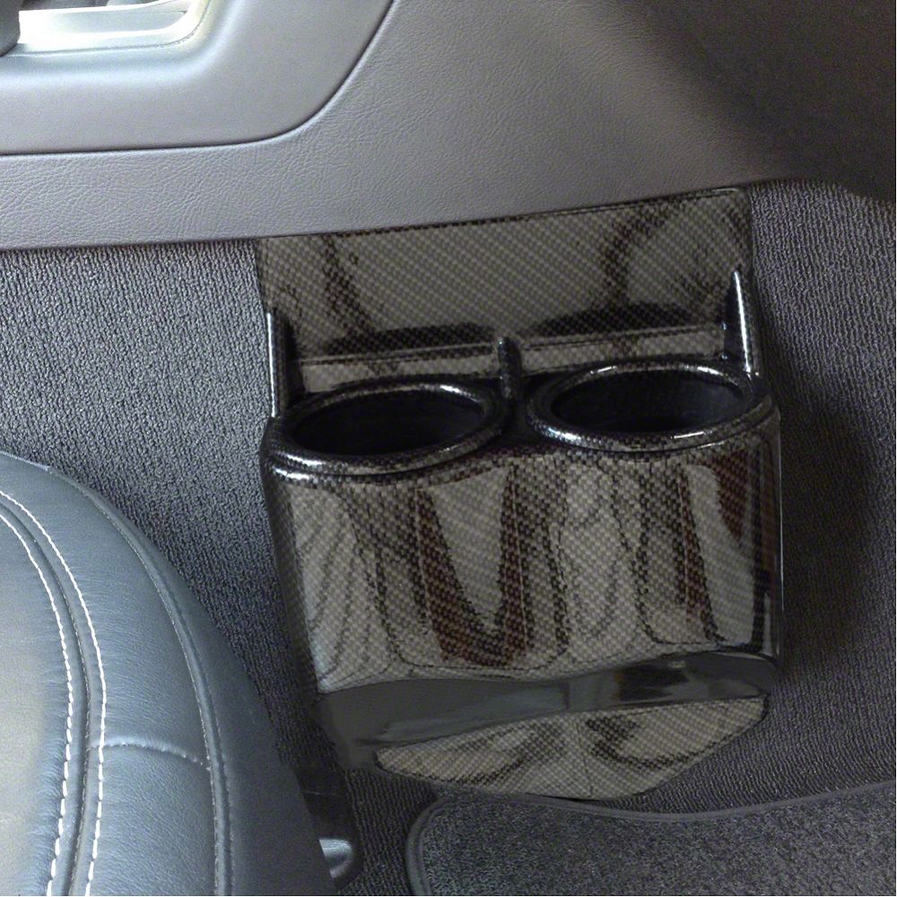 Construction and Appearance. Crafted from durable formed ABS plastic, the cup holder is finished in a glossy black hydro carbon fiber pattern that complements performance-style interiors. This premium finish not only adds a high-end look but also resists fading and surface damage. The rigid form ensures that the holder retains its shape and securely supports your drinks.