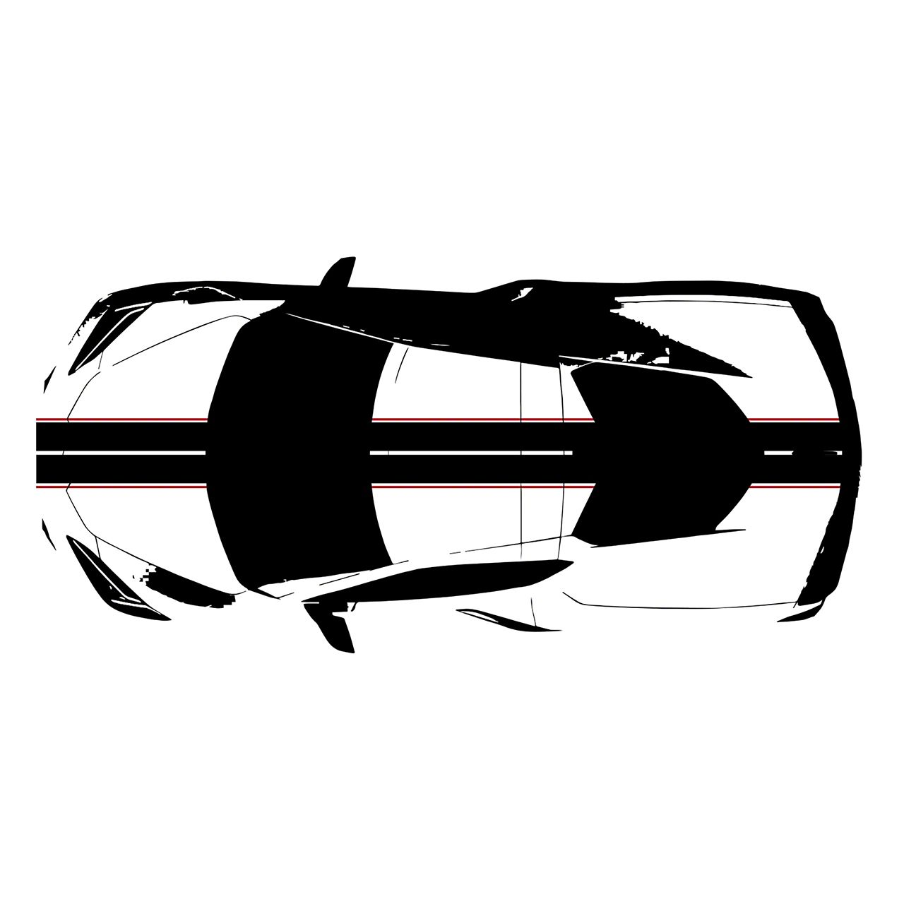 Striking Gloss Black Base with Red Accents. Featuring a high-gloss black finish as the primary stripe and bold red pinstripes along the edges, this kit delivers contrast and style in perfect proportion. The gloss effect enhances the C8’s body contours, while the red outlines add precision detail that highlights the car’s aerodynamic flow.