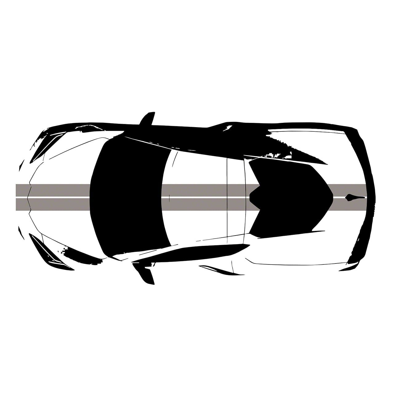 Elevating Your Corvette C8's Appearance. The Front to Back Dual Stripes boast a premium gloss silver finish that imparts a refined and sophisticated aesthetic to your Corvette C8. This carefully applied, high-quality finish is specifically developed to harmonize seamlessly with the vehicle's factory paint, introducing an element of grace and individual style.