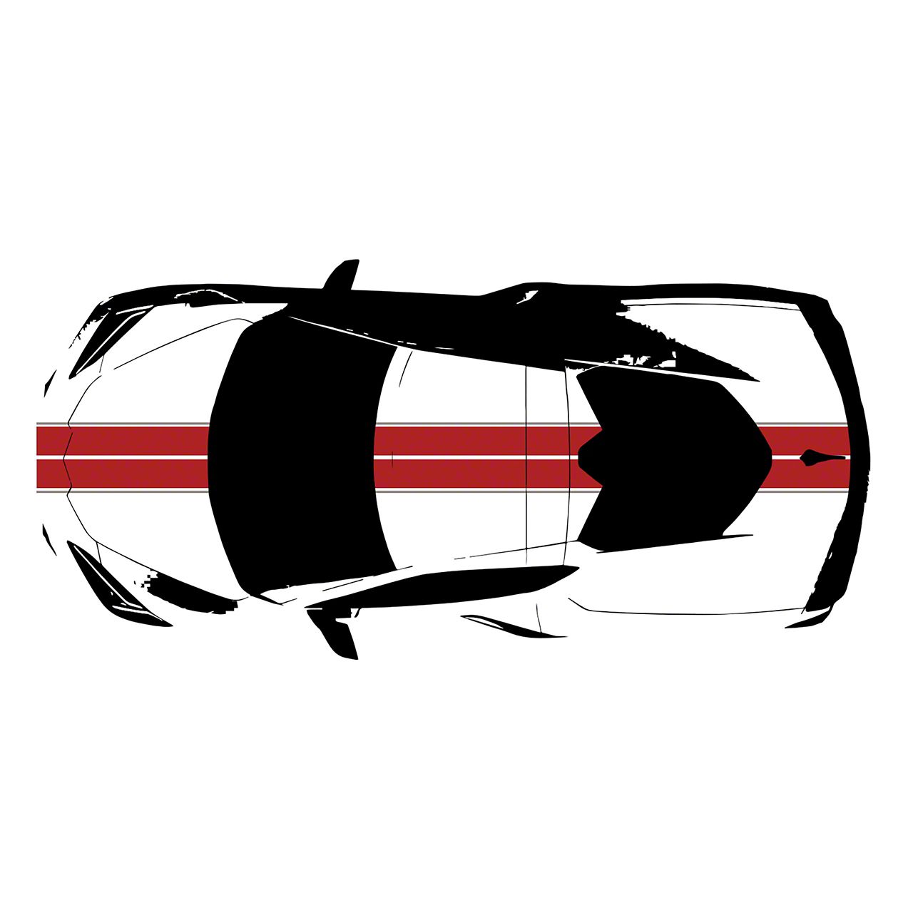 Front to Back Dual Stripes; Matte Red with Gloss Silver Pinstripes (20-26 Corvette C8)Find parts that fit my vehicle