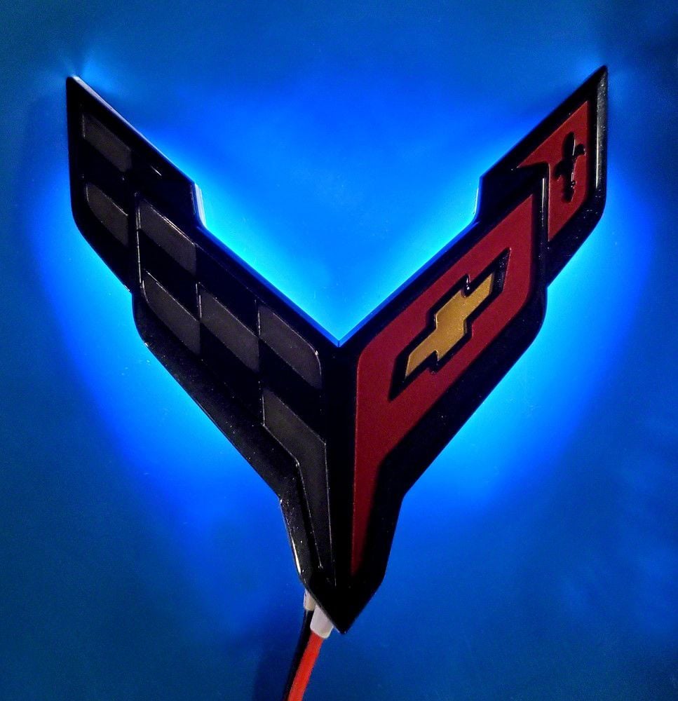 LED Front Stock Emblem with Blue Lighting Effects; Carbon Flash (20-26 Corvette C8)Find parts that fit my vehicle