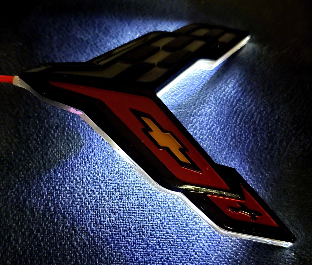 Application. This LED Front Stock Emblem with White Lighting Effects fits 2020-2026 Chevrolet Corvette C8 models.