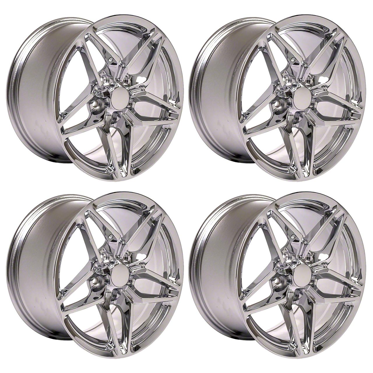 CA Staggered C7 ZR1 Style Chrome 4-Wheel Kit; 17x9.5/18x10.5; 56mm/56mm OffsetThis wheel features a sleek and durable design, ideal for enhancing the aesthetic and style of your vehicle. Its quality craftsmanship ensures a perfect combination of form and function, suitable for any driver seeking a balance of style and dependability. Its high-quality finish ensures resistance against corrosion and wear over time. Designed for optimal visual appeal, this wheel complements a variety of vehicle styles.