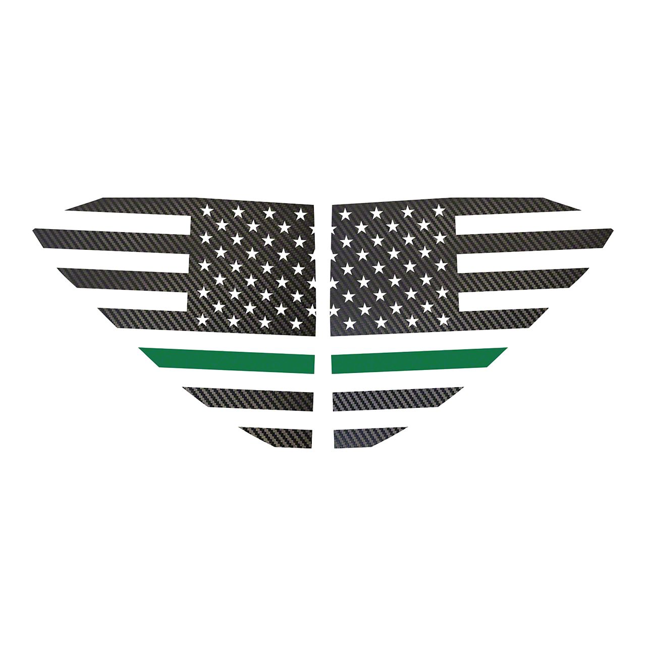 CA Standard US Flag Window Decals; Black Carbon Fiber with Green Stripe
