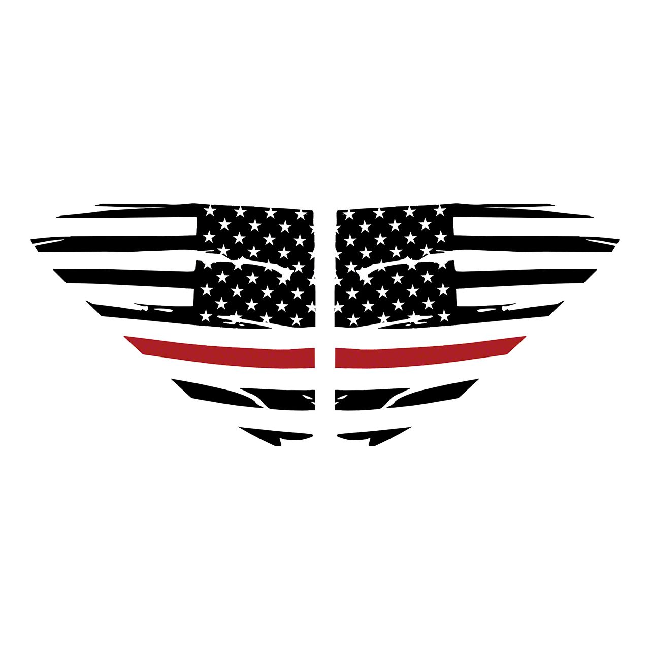 CA Standard US Flag Window Decals; Gloss Black with Red Stripe