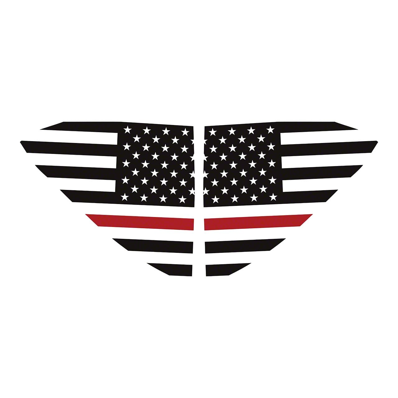 CA Standard US Flag Window Decals; Matte Black with Red Stripe