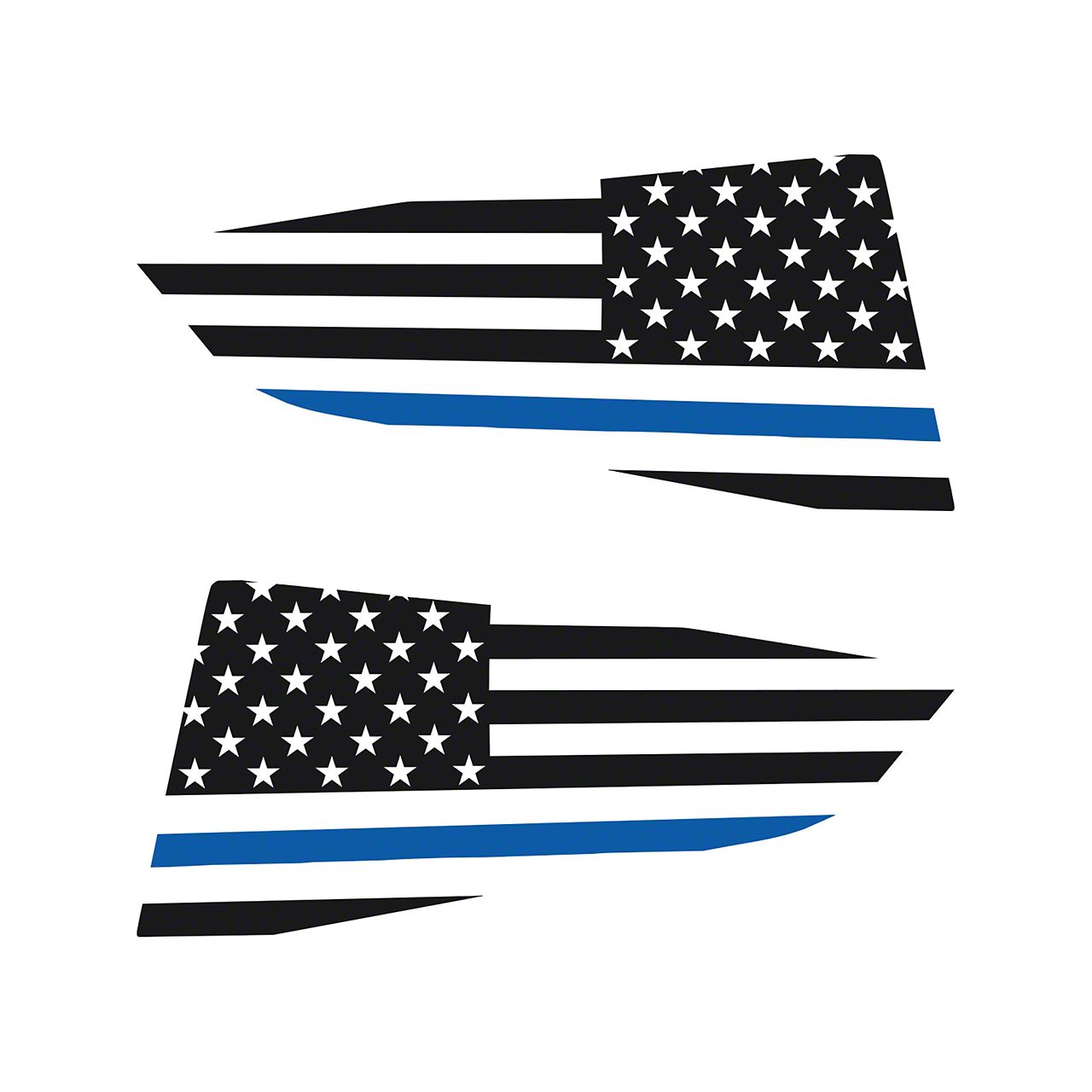 USA Flag Quarter Window Decal; Gloss Black with Blue Stripe (14-19 Corvette C7 Coupe)Find parts that fit my vehicle
