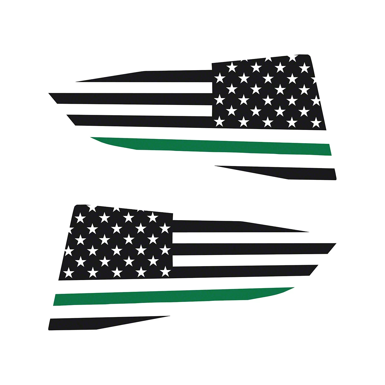 Subtle Patriotism with Unique Flair. These Window Decals bring a bold, personalized touch to 2014–2019 Chevrolet Corvette C7 Coupe models. Designed with a quarter-style U.S. flag graphic in a glossy black finish and accented by a matte green stripe, they offer a sleek tribute that stands out without overpowering your vehicle’s aesthetic.