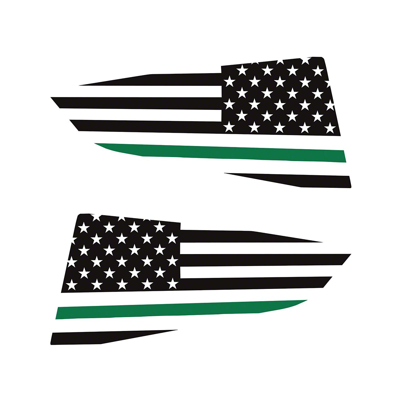Military-Inspired Accent. These Window Decals offer a unique way to personalize 2014–2019 Chevrolet Corvette C7 Coupe models with a subtle nod to service and heritage. Featuring a matte black USA flag quarter design with a matte green stripe, they bring a bold and meaningful visual element to your ride's side profile.