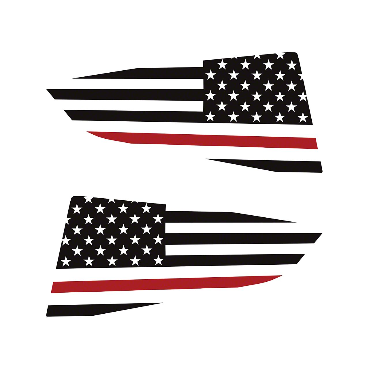Application. This USA Flag Quarter Window Decal (Matte Black with Red Stripe) fits 2014–2019 Chevrolet Corvette C7 Coupe models.