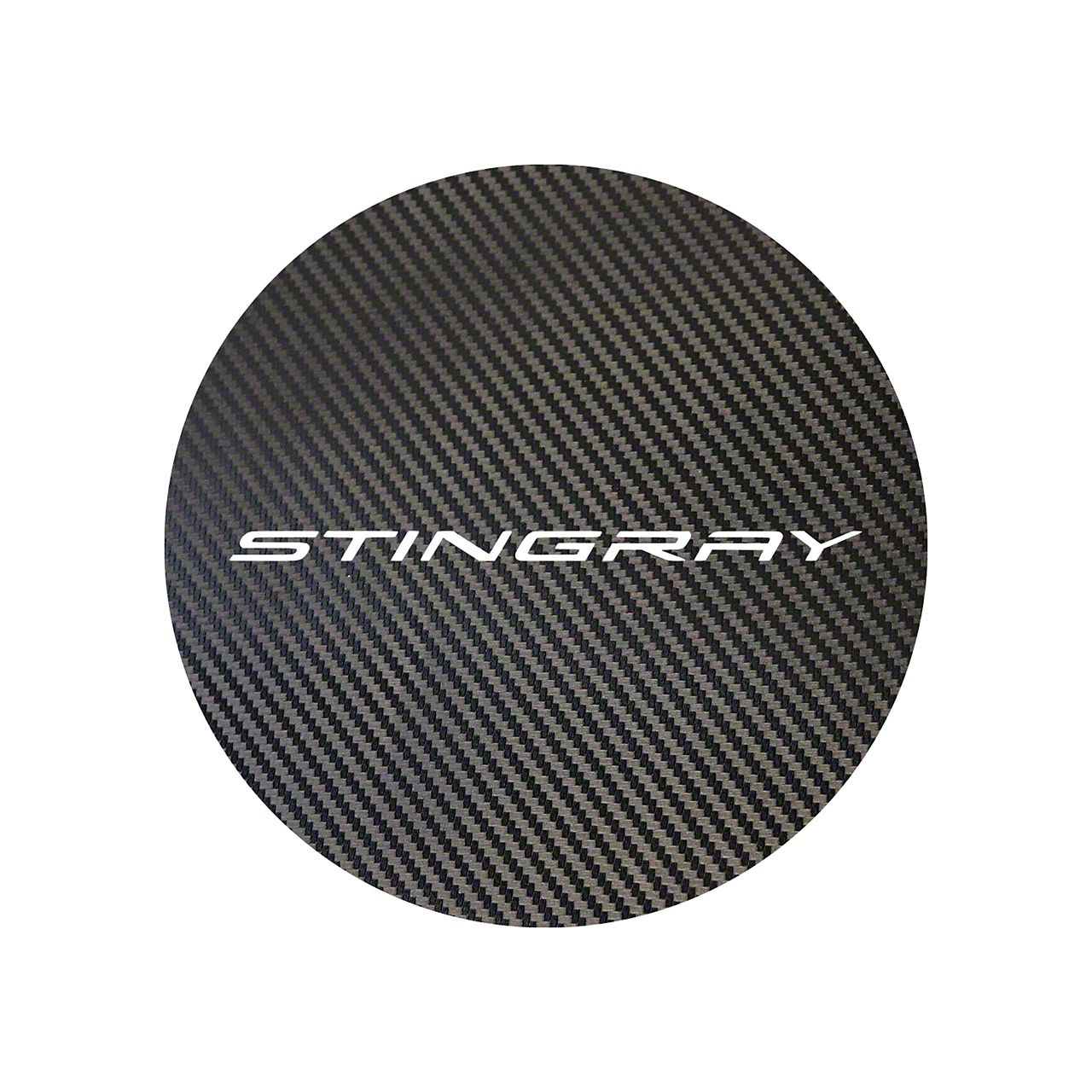 Vinyl Gas Door Overlay with Stingray Logo Silhouette; Black Carbon Fiber (20-26 Corvette C8)Find parts that fit my vehicle