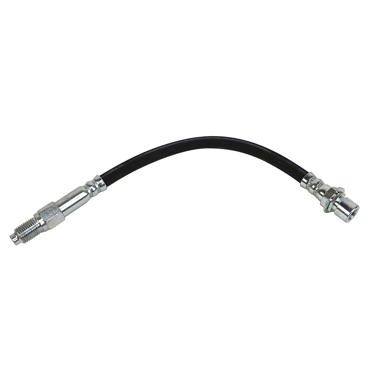 Construction and Appearance. This brake hose is constructed from durable rubber designed to withstand high pressure, heat, and exposure to brake fluid. It features OE-style end fittings that ensure proper sealing and compatibility with factory brake components. Manufactured with a direct replacement design, it maintains a factory-correct appearance while delivering reliable performance.