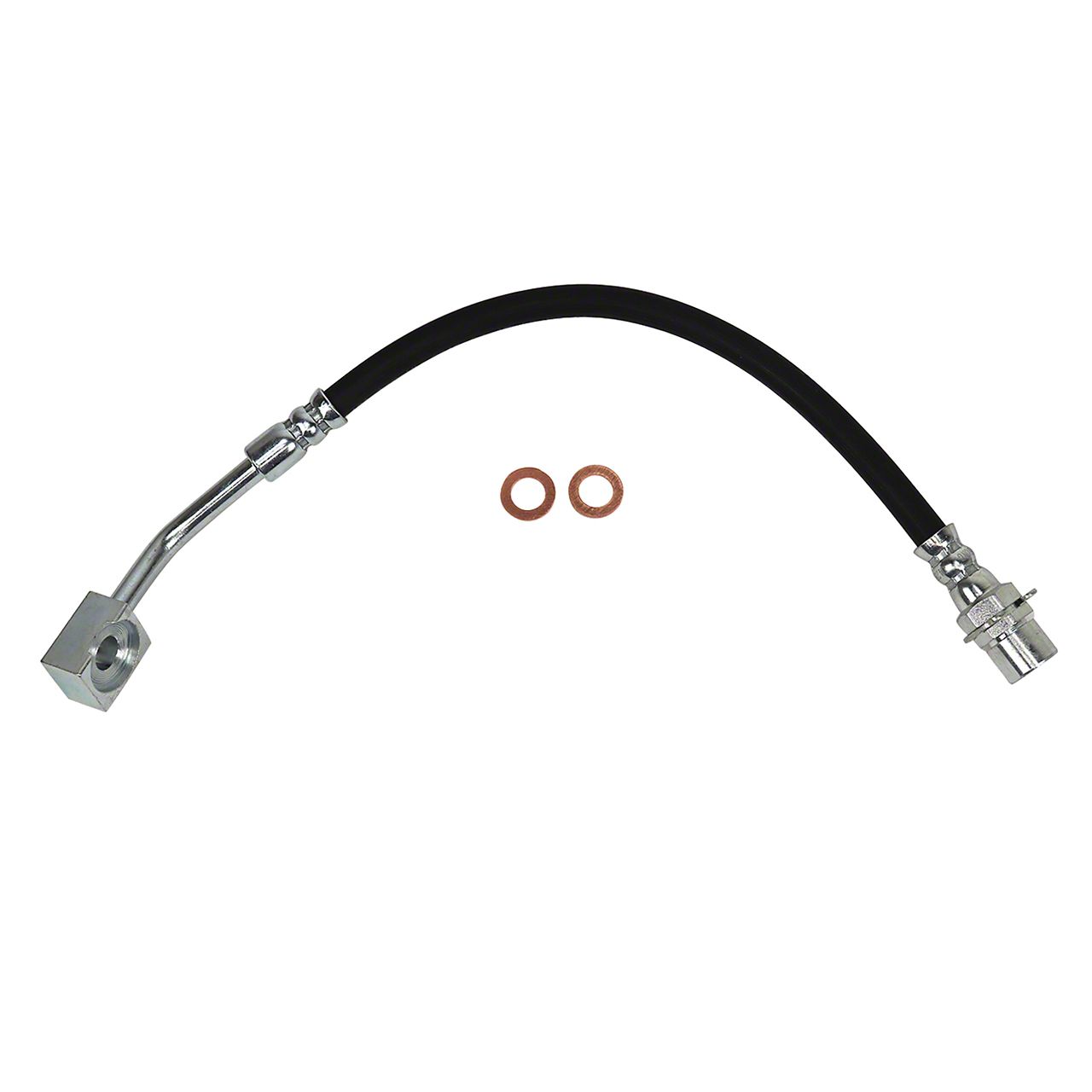 Construction and Appearance. This brake hose is constructed from durable rubber designed to withstand high pressure, heat, and exposure to brake fluid. It features OE-style end fittings that ensure proper sealing and compatibility with factory brake components. Manufactured with a direct replacement design, it maintains a factory-correct appearance while delivering reliable performance.