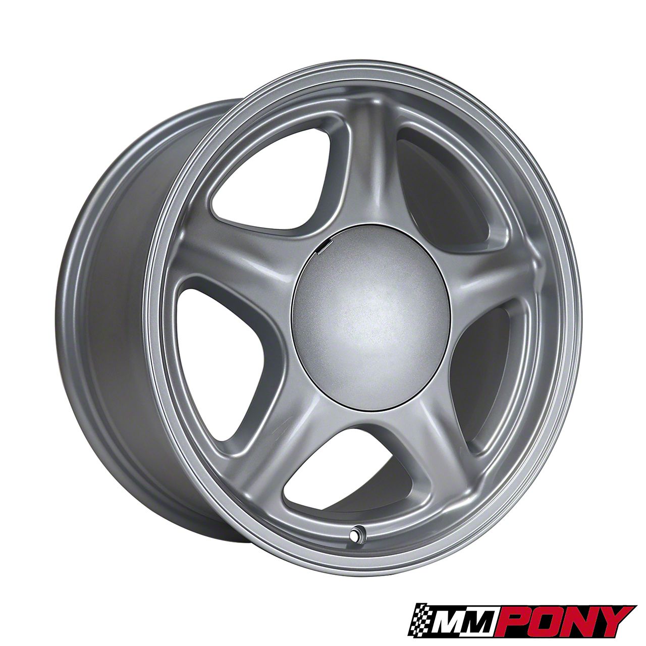 Application.This Pony Metallic Silver Wheel; 17x8; 19mm Offset, with a backspace of 5.248 Inch, 133.3mm; and bolt pattern of 5 x 114.3mm (5 x 4.5-Inch), is designed to fit 79-93 Mustang w/ 5-Lug Conversion models. Sold individually.