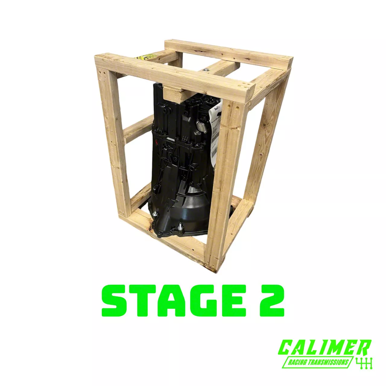 A stage 2 Calimer Complete MT82 includes:A remanufactured transmissionBillet shift rail stopBronze shift pad upgradeNew carbon fiber synchronizersMicro-Polishing of internal parts (This will reduce friction, increase longevity, and allow for better gear engagement.)Installation of new seals & bearingsProfessional reassembly of your transmissionPainted caseRecommended oil includedApproximate lead times are typically 1-2 weeks.$500 REFUNDABLE CORE CHARGE INCLUDED IN PRICE! (This means that once you receive this transmission if you wish to send your core back to us, we will refund you $500 and cover the shipping of the core back to us.)We recommend organic style clutches for all 11-17 Stage 1 & 2 transmission builds! This transmission is not recommended to be used with boost, an aggressive clutch, or hard track abuse.