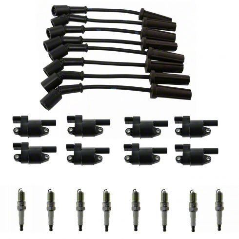 Premium Quality Kit. This kit features round style ignition coils. The noise-suppressing ignition wires have wire wound stainless steel cores with 7mm silicone insulation covers. Platinum spark plugs complement the other components of the kit and ensure superior performance.