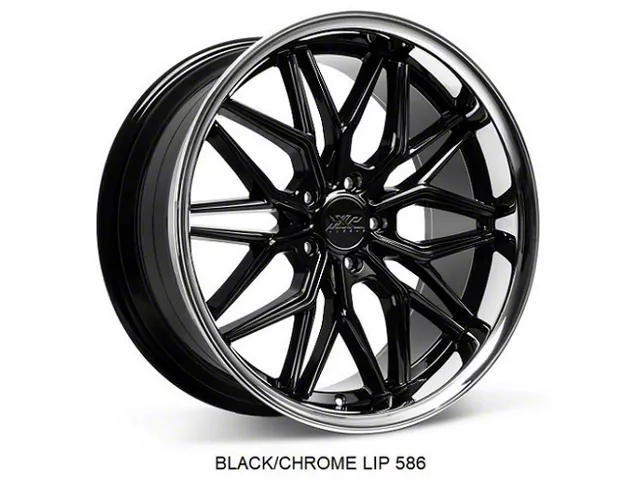 586 Black with Stainless Steel Chrome Lip Wheel; 20x8.5; 35mm Offset offers a sleek and assertive aesthetic that enhances a vehicle's visual presence. Its gloss black finish amplifies the appeal, making it a great match for bold styling themes. This wheel brings a refined edge to any build while maintaining a confident stance on the road. Crafted to elevate the appearance of a wide range of vehicles.