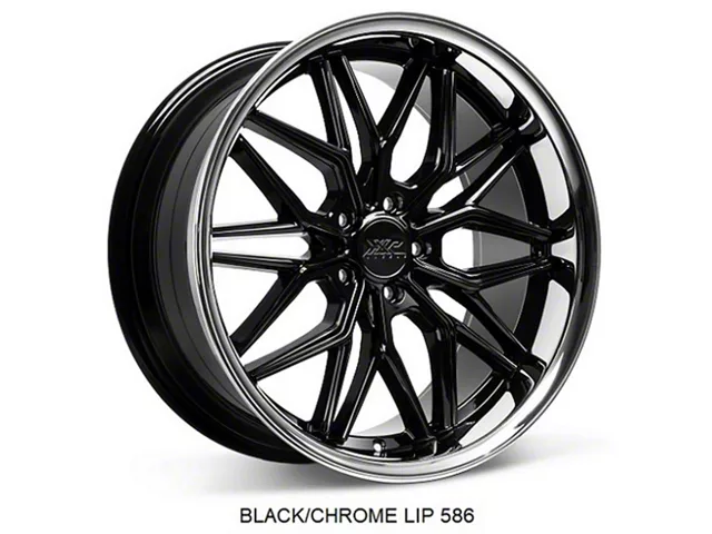 586 Black with Stainless Steel Chrome Lip Wheel; 20x9.5; 35mm Offset offers a sleek and assertive aesthetic that enhances a vehicle's visual presence. Its gloss black finish amplifies the appeal, making it a great match for bold styling themes. This wheel brings a refined edge to any build while maintaining a confident stance on the road. Crafted to elevate the appearance of a wide range of vehicles.