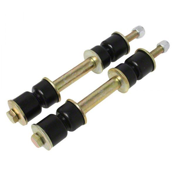 Construction and Appearance. Made from durable polyurethane material known for its strength, flexibility, and resistance to wear, these end links feature a black finish that provides corrosion protection while maintaining a sleek look.
