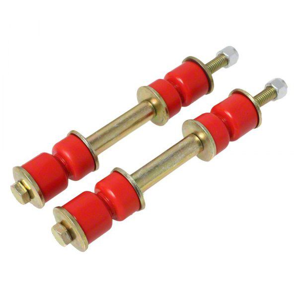 Construction and Features. Featuring a durable glossy red finish, these sway bar end links are built to outperform and outlast traditional rubber models. Their adjustable 4-5/8 to 5-1/8-inch design allows for fine-tuned suspension adjustments, ensuring improved ride quality and responsiveness.