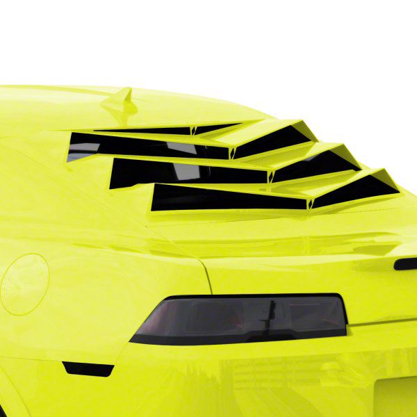 Standout Window Accent. Whether you’ve got a Bakkdraft Rear Window Louvers/Valance installed or you just want to highlight your Camaro’s quarter window, check out the Bakkdraft Quarter Window Louvers in Lemon Peel. This pair of quarter window louvers compliments your rear window louvers adding more aggressiveness to your car’s overall look. If you don’t have a rear valance installed, this enhancement will definitely be a standout on your quarter window.