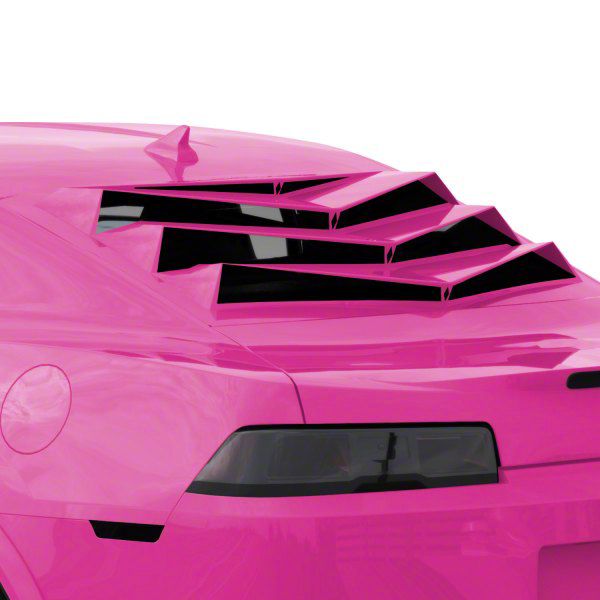 Standout Window Accent. Whether you’ve got a Bakkdraft Rear Window Louvers/Valance installed or you just want to highlight your Camaro’s quarter window, check out the Bakkdraft Quarter Window Louvers in Magenta Man. This pair of quarter window louvers compliments your rear window louvers adding more aggressiveness to your car’s overall look. If you don’t have a rear valance installed, this enhancement will definitely be a standout on your quarter window.