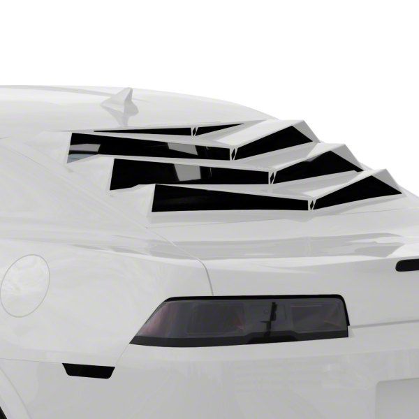Standout Window Accent. Whether you’ve got a Bakkdraft Rear Window Louvers/Valance installed or you just want to highlight your Camaro’s quarter window, check out the Bakkdraft Quarter Window Louvers in Olympic White. This pair of quarter window louvers compliments your rear window louvers adding more aggressiveness to your car’s overall look. If you don’t have a rear valance installed, this enhancement will definitely be a standout on your quarter window.