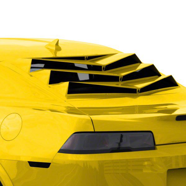 Standout Window Accent. Whether you’ve got a Bakkdraft Rear Window Louvers/Valance installed or you just want to highlight your Camaro’s quarter window, check out the Bakkdraft Quarter Window Louvers in Rally Yellow. This pair of quarter window louvers compliments your rear window louvers adding more aggressiveness to your car’s overall look. If you don’t have a rear valance installed, this enhancement will definitely be a standout on your quarter window.