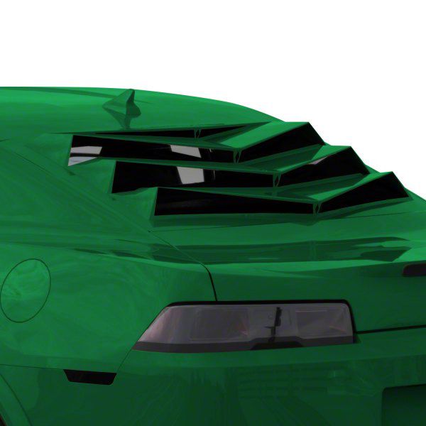Standout Window Accent. Whether you’ve got a Bakkdraft Rear Window Louvers/Valance installed or you just want to highlight your Camaro’s quarter window, check out the Bakkdraft Quarter Window Louvers in Unripened Green. This pair of quarter window louvers compliments your rear window louvers adding more aggressiveness to your car’s overall look. If you don’t have a rear valance installed, this enhancement will definitely be a standout on your quarter window.