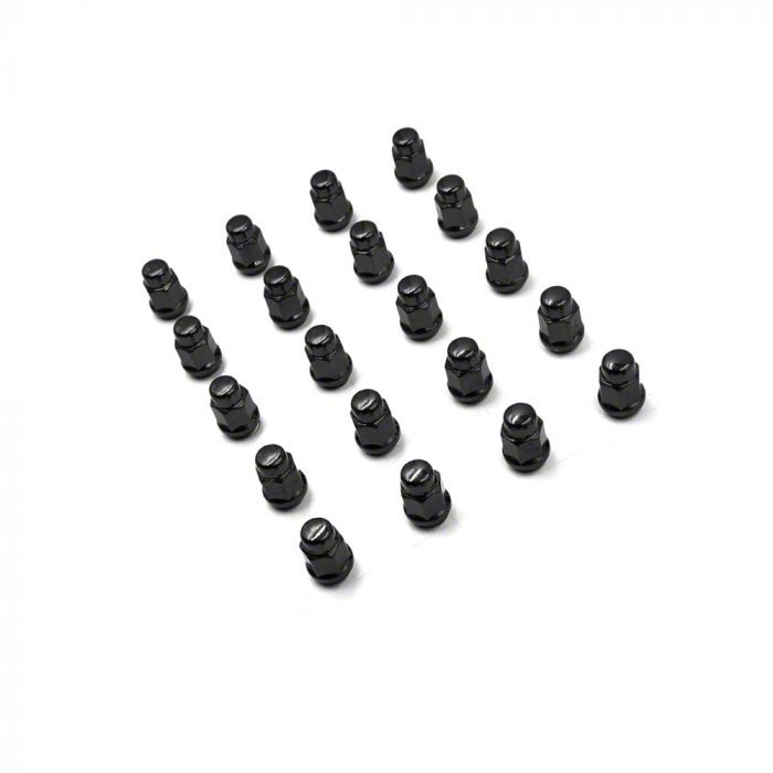 Secured and Sleek Driving. Boost your Camaro’s safety features and sporty style by using this Set of 20 Black Acorn Lug Nut Kit with 3/4-Inch Hex Size on your wheels. Each lug nut features a bulge acorn design, supreme construction, and 14 mm x 1.50-inch thread pitch. These fasteners are engineered to keep your tires securely attached to the hub. Moreover, the black finish appealingly enhances your Camaro’s aggressive stance.