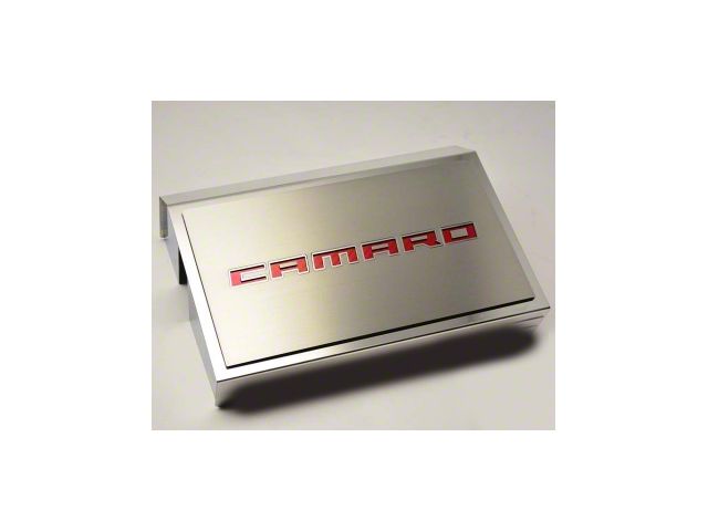 Description. We've got an awesome new line of engine accessories for the Gen 6 Camaro. Win more car shows by dressing up your V8 engine with our 2 piece dress kit, Fuse Box Cover with 'CAMARO' Top Plate, available in a variety of vinyl inlay colors. The Fuse Box Cover is fabricated from premium stainless steel and available in 2 finish options. It's topped off with our GM Officially Licensed CAMARO style top plate laser-cut from brushed stainless steel. Choose a color for CAMARO inlay & a finish for the cover when ordering from the drop-down menu above.