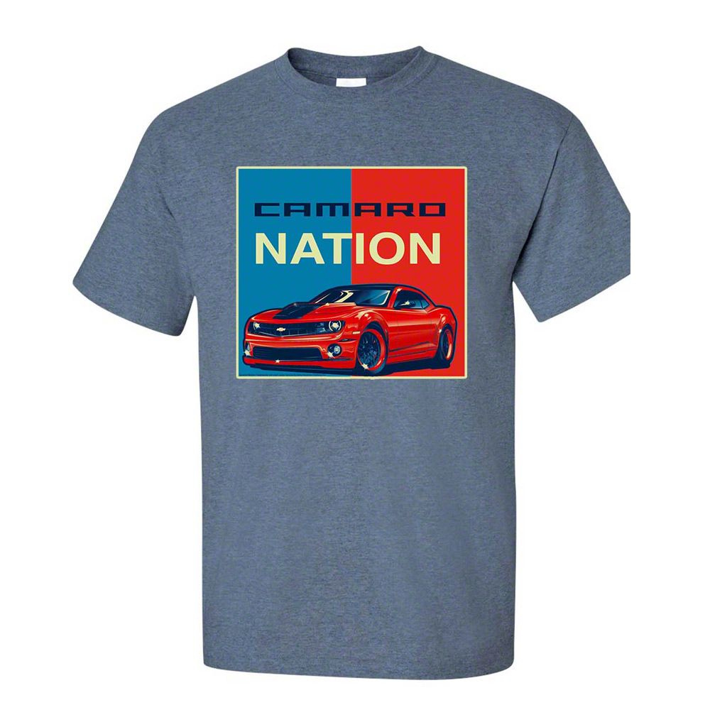 Application. The Camaro Nation T-Shirt fits Camaro models.