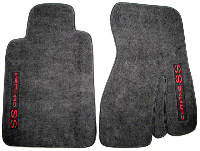 Stylish Floor Protection. The Carpet Front Floor Mats are designed to provide both protection and style for the interior of your 1993-2002 Camaro Coupe. Featuring a striking racing red finish with the Camaro SS logo design, these floor mats add a touch of elegance while safeguarding your vehicle's stock flooring and upholstery.